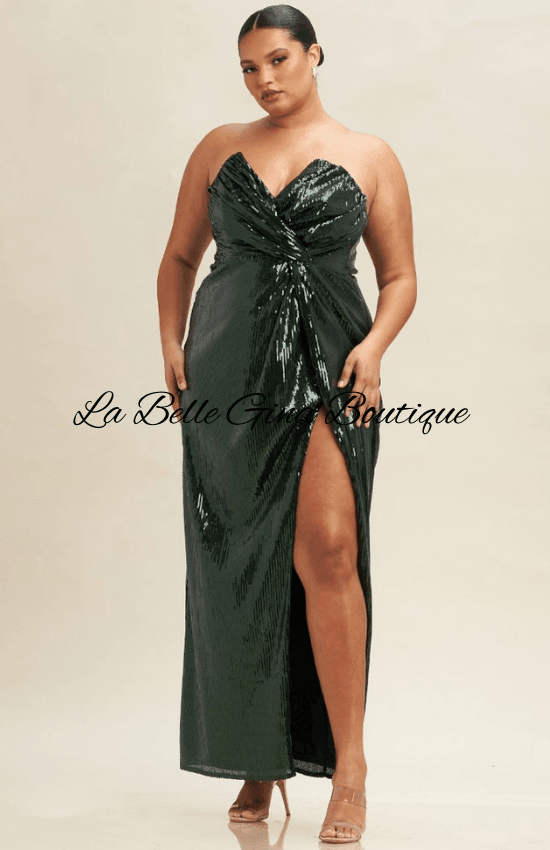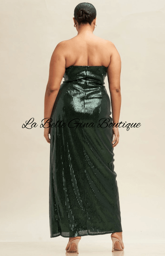 Bella Strapless Sweetheart Sequin Plus Size Maxi Dress-Hunter Green