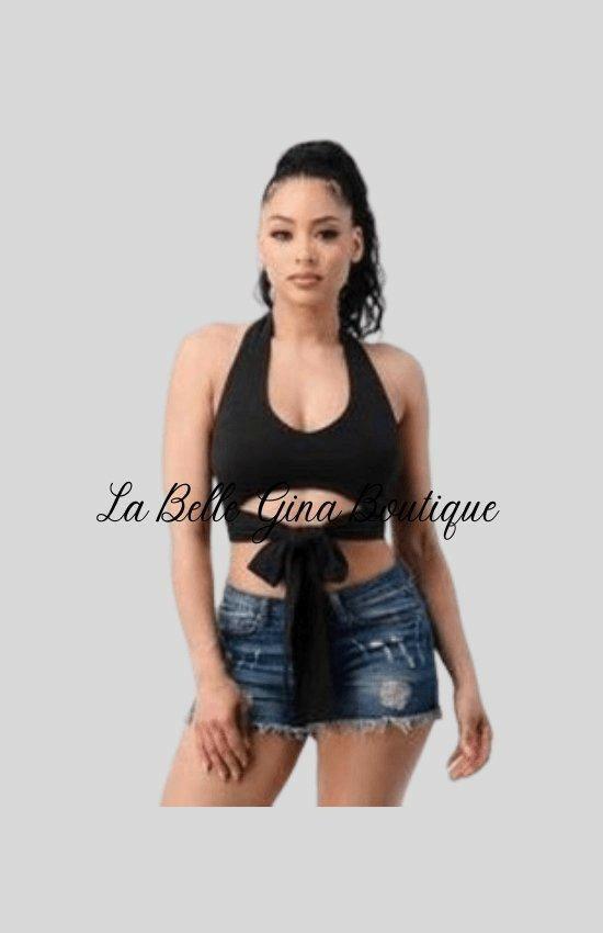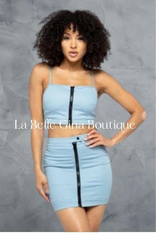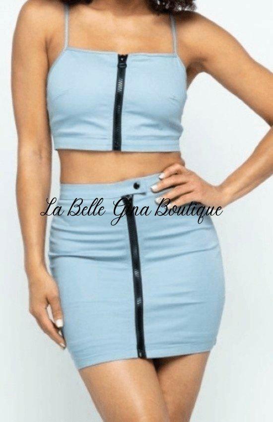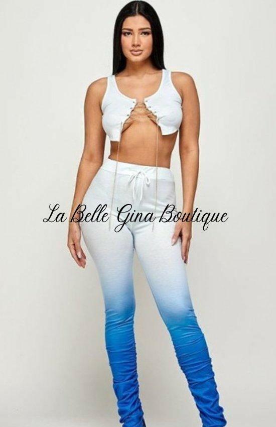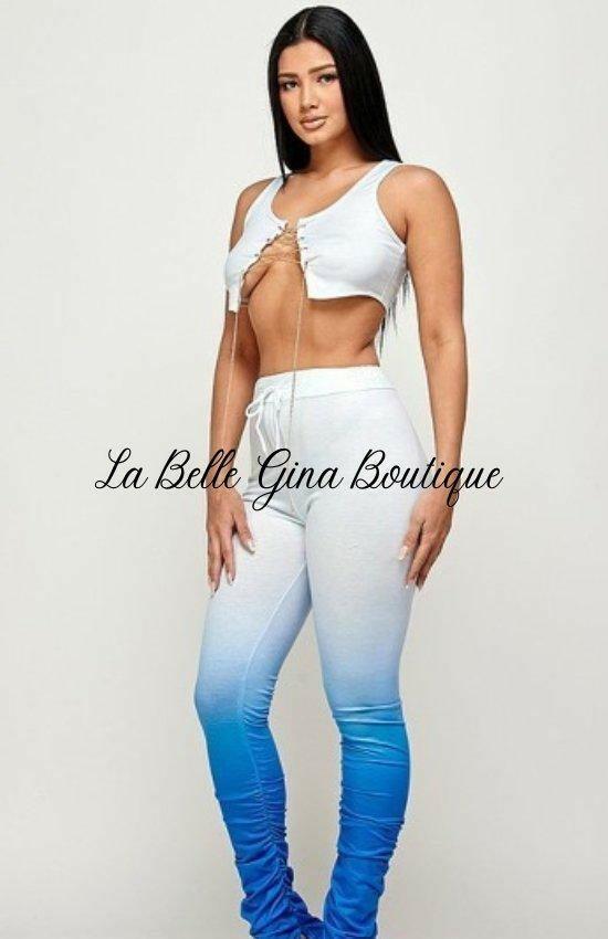 Avena Sleeveless Crop Top And Pants Set-Blue-FINAL SALE