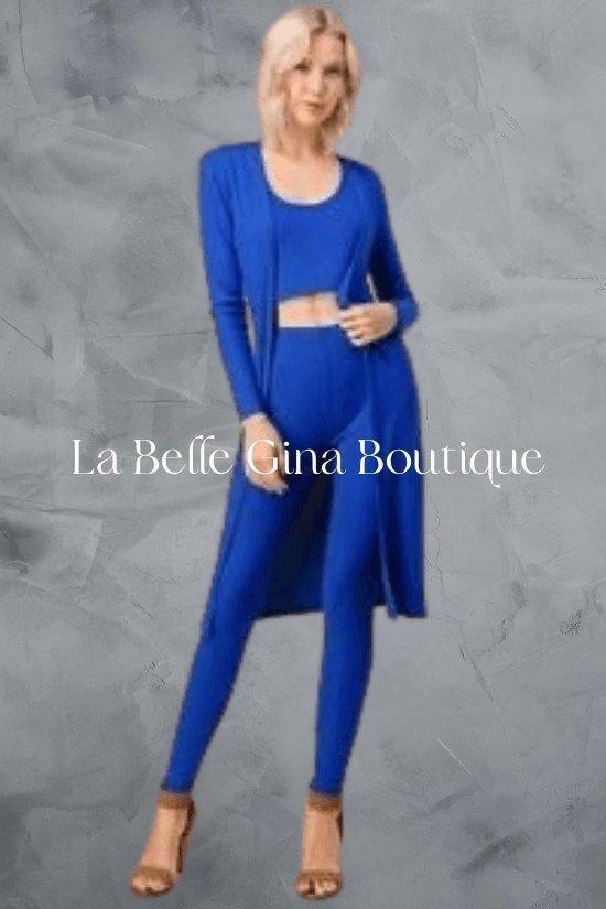 Ave ribbed tank top high waist legging cardigan 3 piece set.