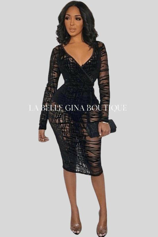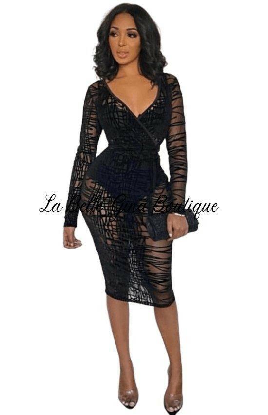 AVY sexy see through lace up shoulder sheer long sleeves mini dress-FINAL SALE