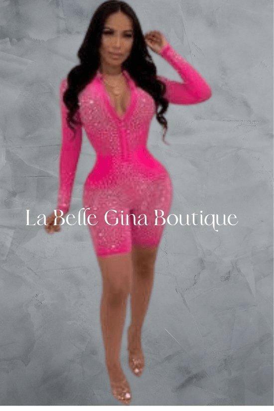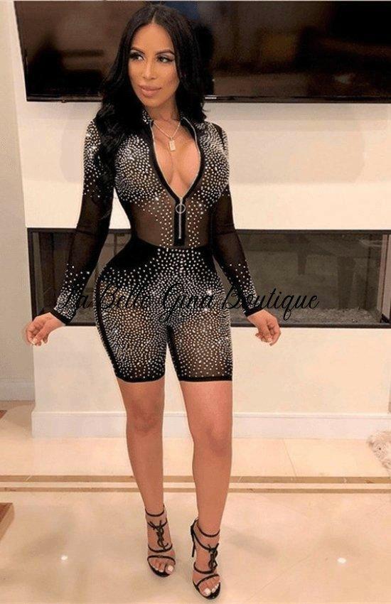 BAE mesh patch studded sequine zipper see through romper-FINAL SALE