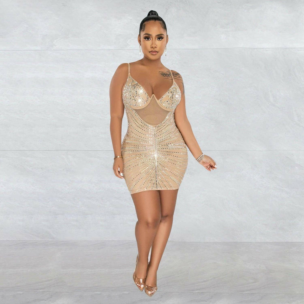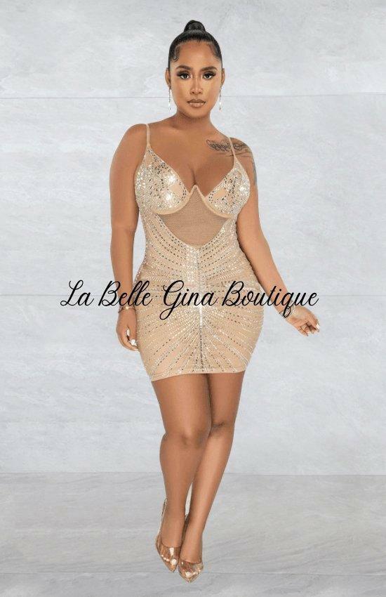 Camille Beige Mesh Sherr Mini Dress-Beige-FINAL SALE