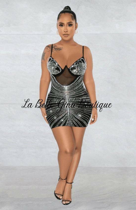 Black & Nude Rhinestone Long Sleeve Bodycon Gown | La Belle Gina Boutique