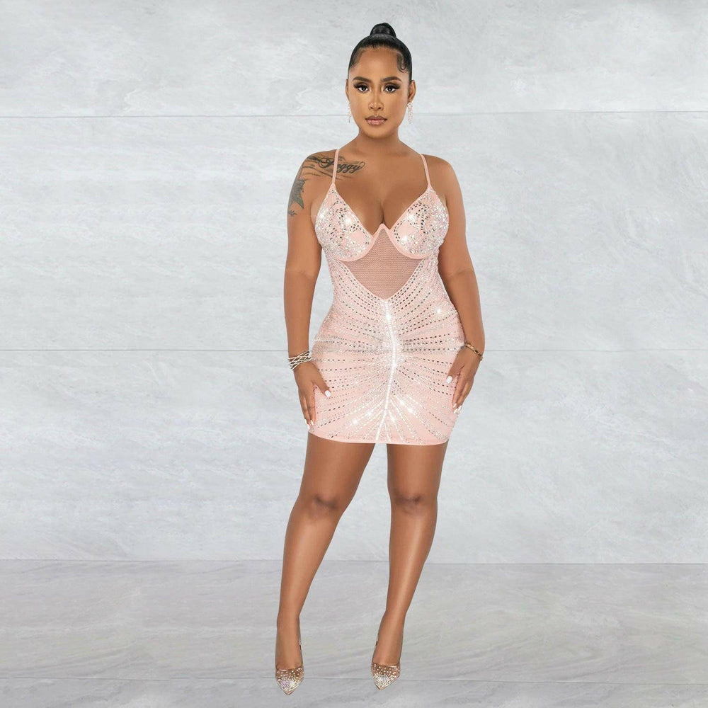 Bernadette wavy sexy breast binding Mesh Long Dress-pink-FINAL SALE