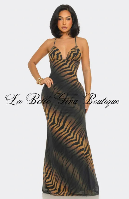 Wild Luxe Zebra Print Backless Maxi Dress – Sexy Bodycon Evening Dress | La Belle Gina Boutique