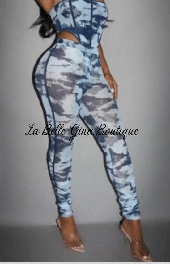 DAN mesh camo print and matching mesh high waist legging set