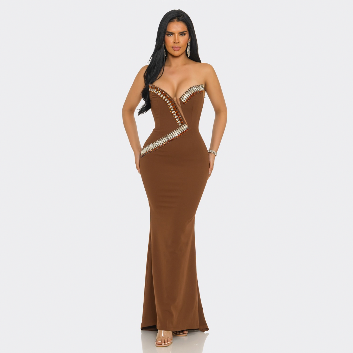It’s this perfect balance of comfort and glamour that makes the Imperial Goddess rhinestone trim gown stand out among luxury dresses.