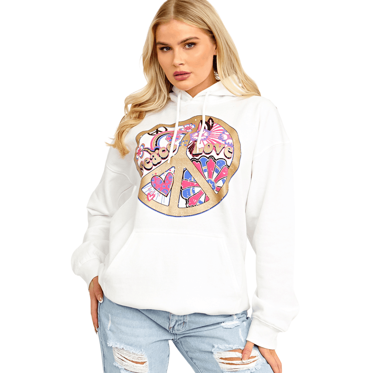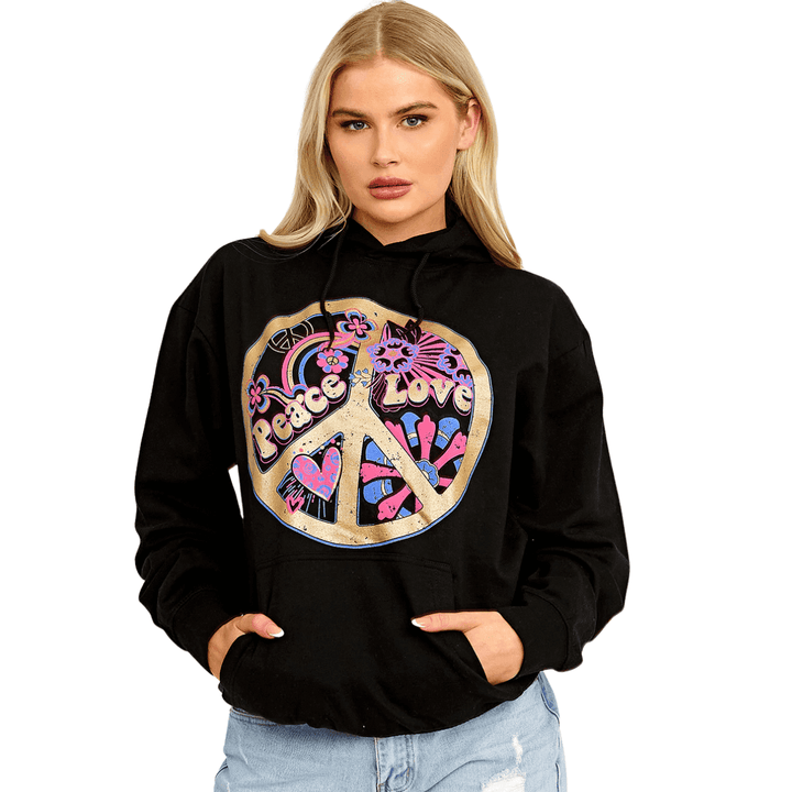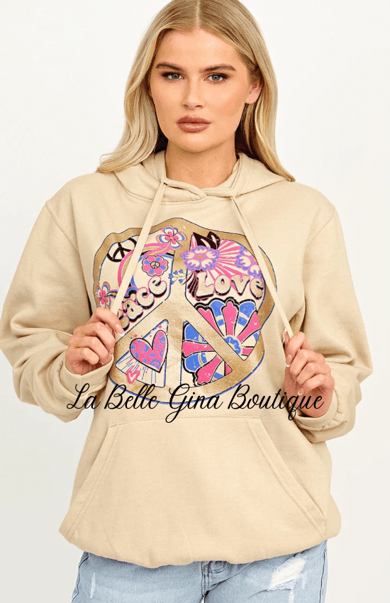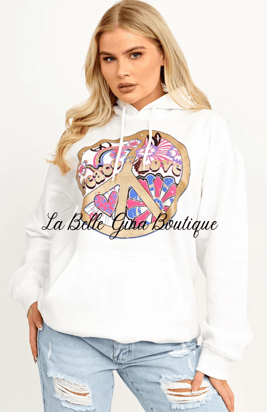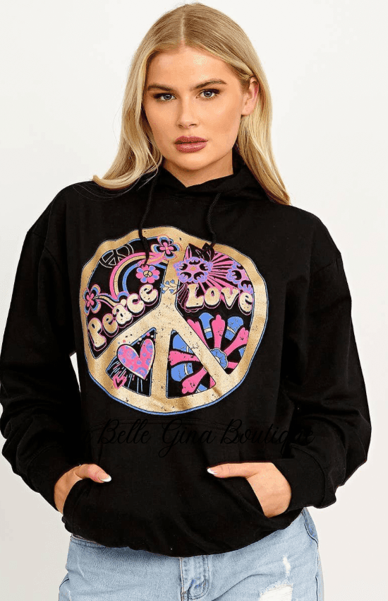 Nellie Peace Love Graphic Print Hoodie - La Belle Gina Boutique