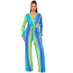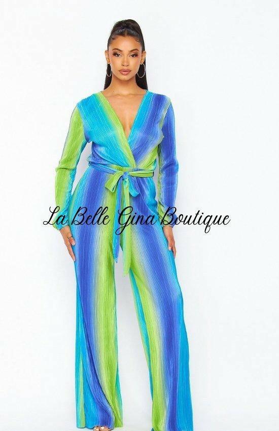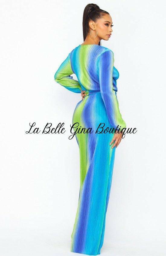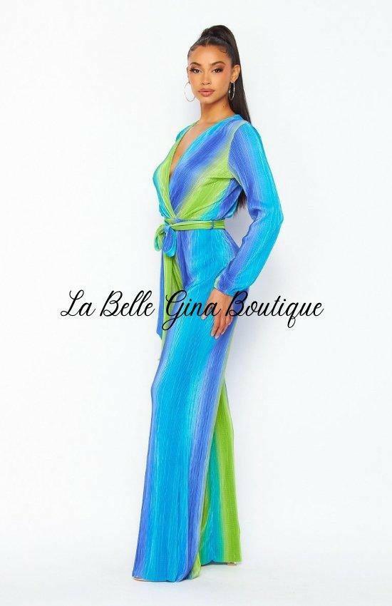 Colette Long Sleeve Bodre Jumpsuit-Blue Multi - La Belle Gina Boutique