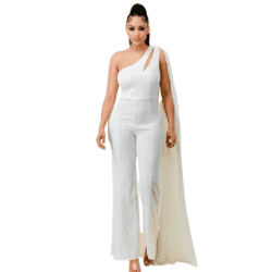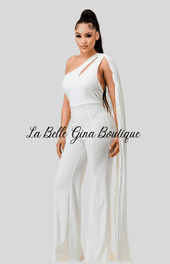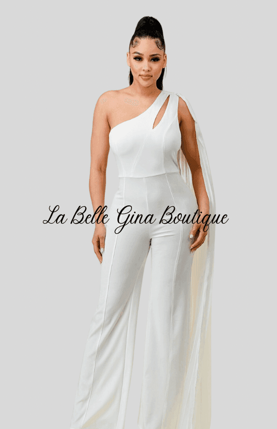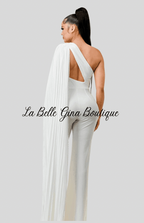 Rose One shoulder Cut Out With Pleats layered Jumpsuit-White - La Belle Gina Boutique