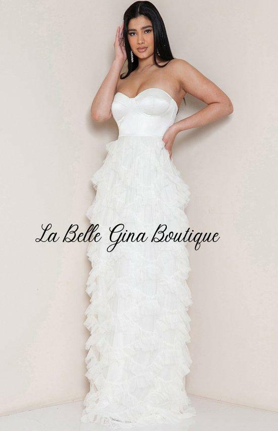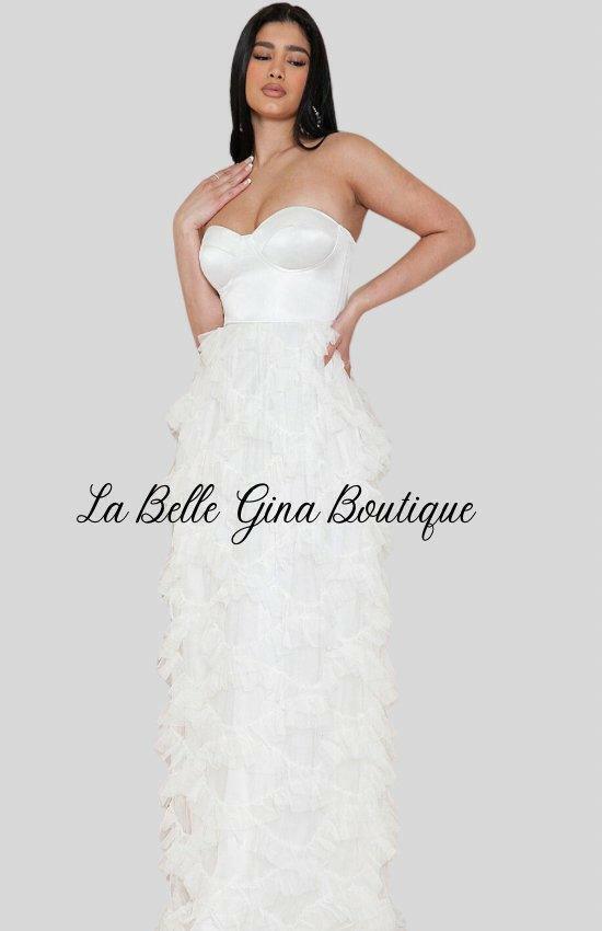 Juliette Tulle Ruffle Layered Maxi Dress-Cream - La Belle Gina Boutique