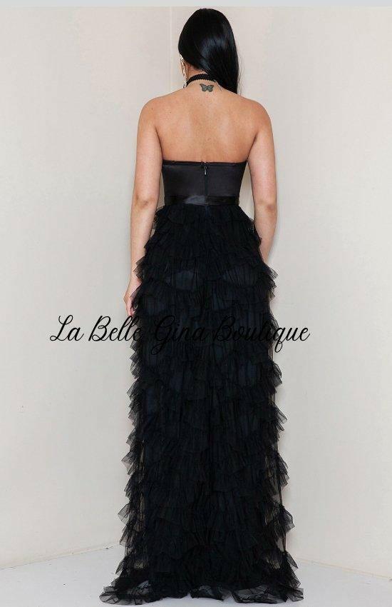 Introducing the Juliette Tulle Ruffle Layered Maxi Dress in Blush, the epitome of elegance and femininity. This stunning dress is perfect for any special occasion, whether it's a birthday celebration, a cocktail party, or even a wedding.