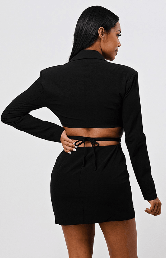 Lisa Blazer Long sleeves Cut Out and back Tie Mini Dress
