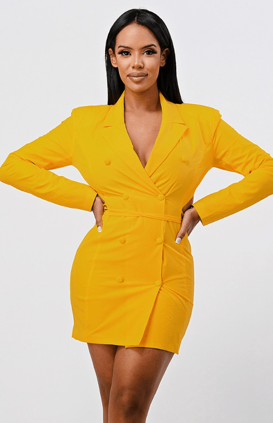 Elevate your wardrobe with the Lisa Blazer Long Sleeves Cut Out and Back Tie Mini Dress. This stylish mini dress combines sophistication with a playful edge, featuring long sleeves that add elegance and a chic cut-out design that reveals just the right amount of skin. The back tie detail provides a flattering fit, making it perfect for any occasion. Transform your look effortlessly and stand out with this must-have piece.