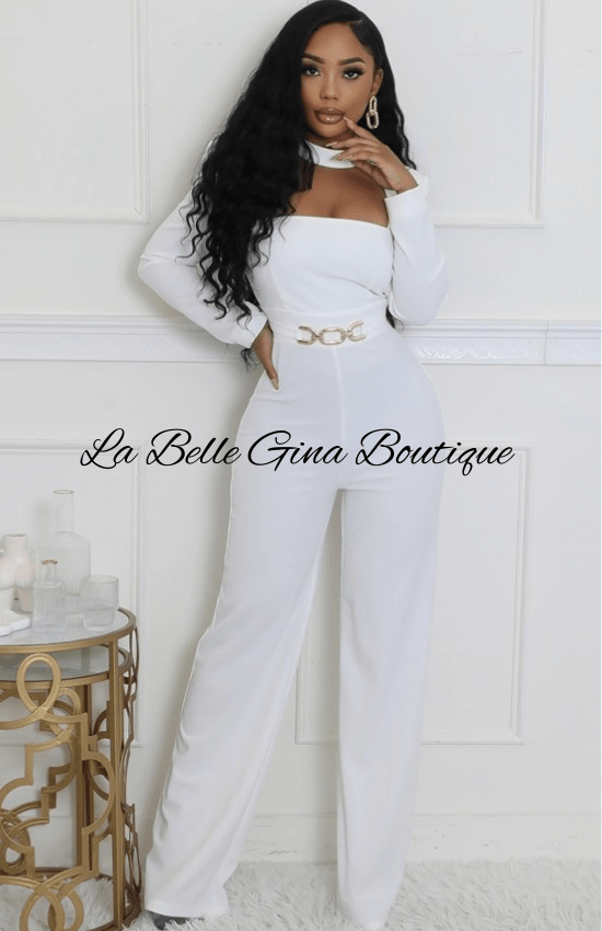Introducing the Lisa Stretch Round Neck Long Sleeves Jumpsuit in Off White. This stylish jumpsuit combines comfort with elegance, featuring a flattering round neckline and long sleeves that effortlessly transition from day to night. Made from a stretchy fabric, it hugs your curves while allowing for easy movement. Perfect for any occasion, pair it with heels for a chic look or dress it down with sneakers for a casual vibe. Elevate your wardrobe with this versatile piece.