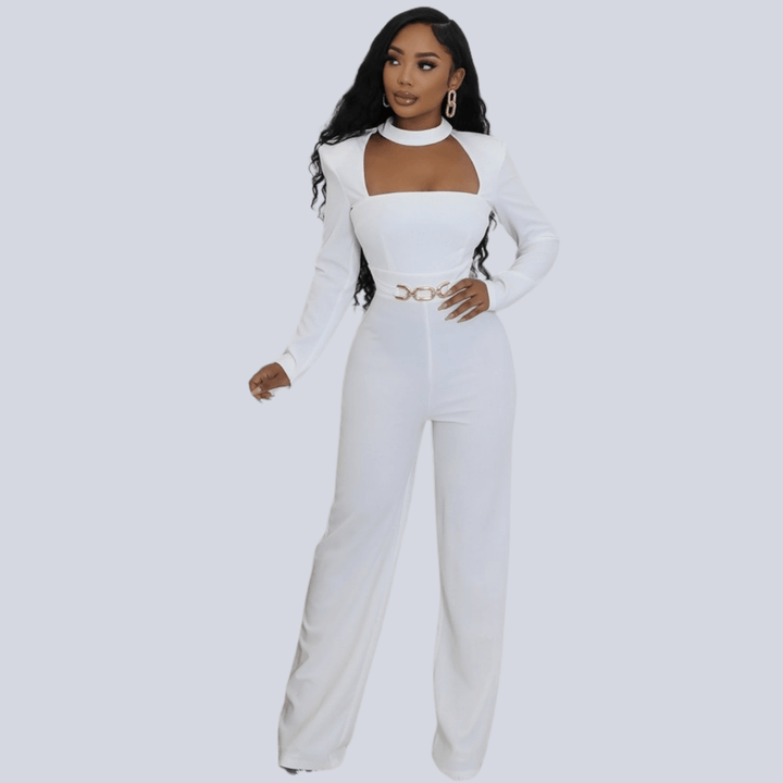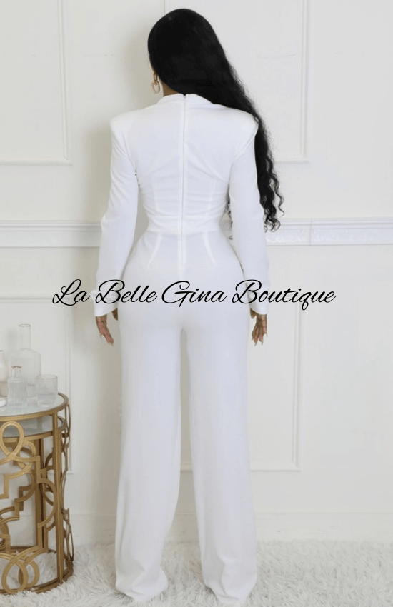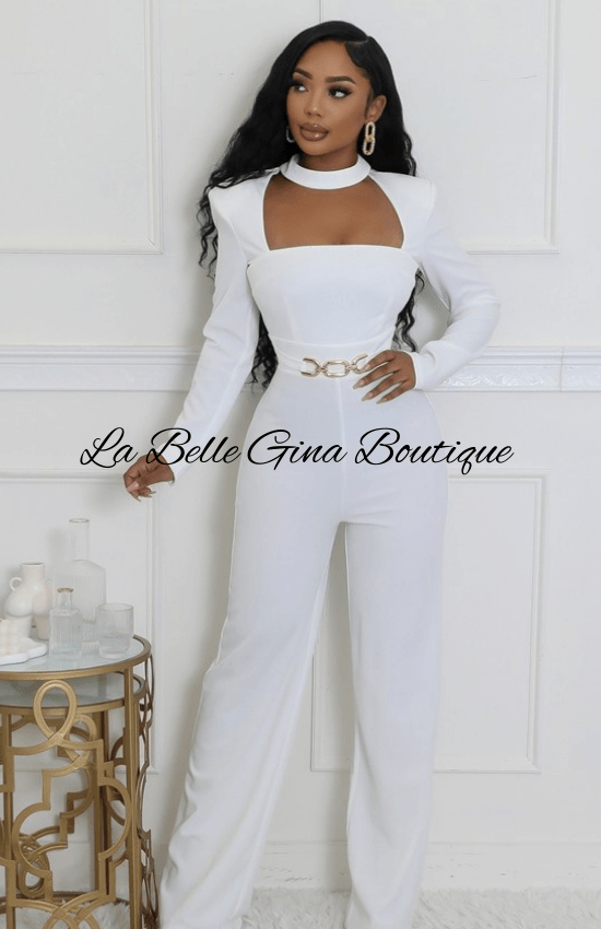Lisa Stretch Round Neck Long Sleeves Jumpsuit-Off White