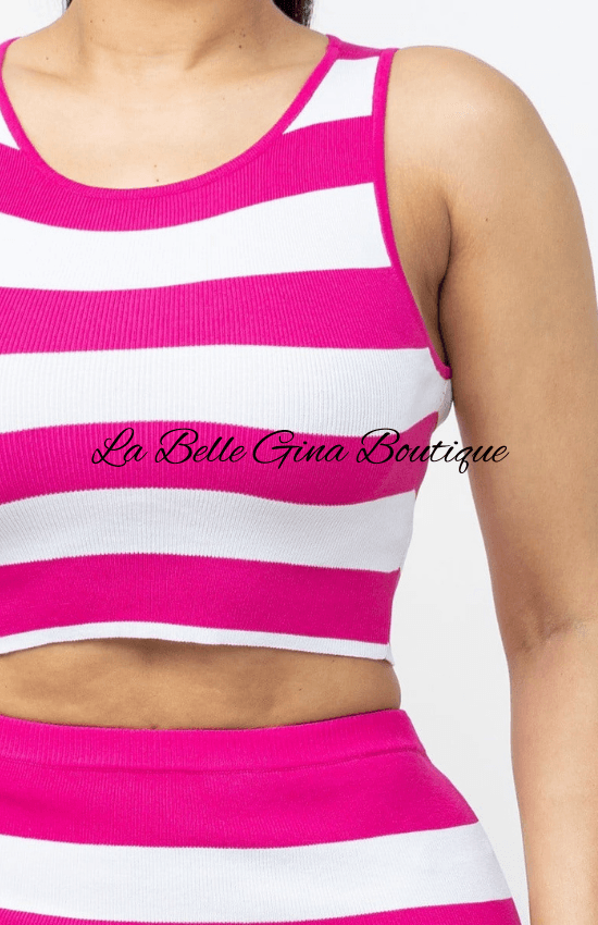 Sandra Sleeveless Side Slit Maxi Skirt Set-White/Fuchsia