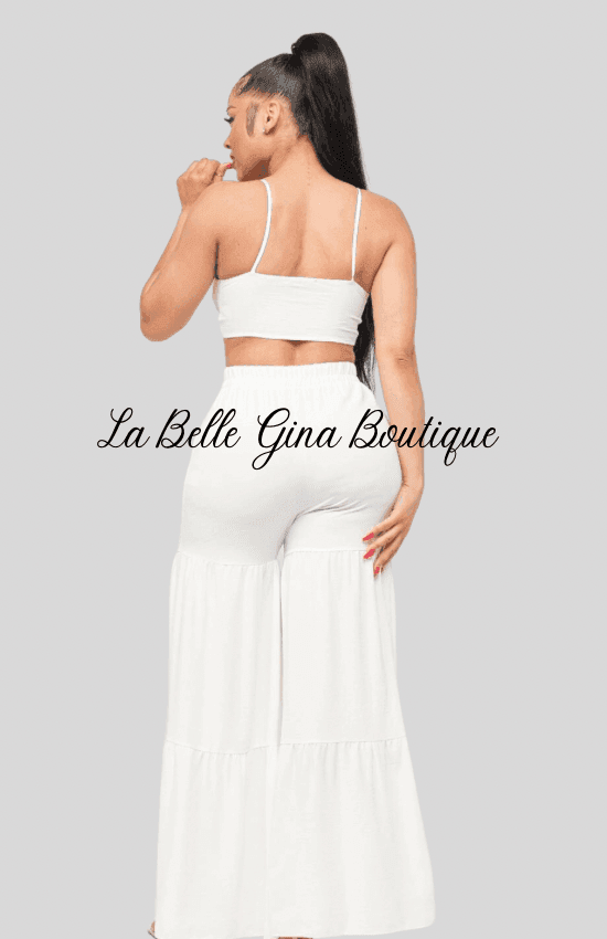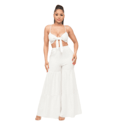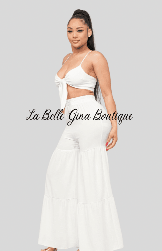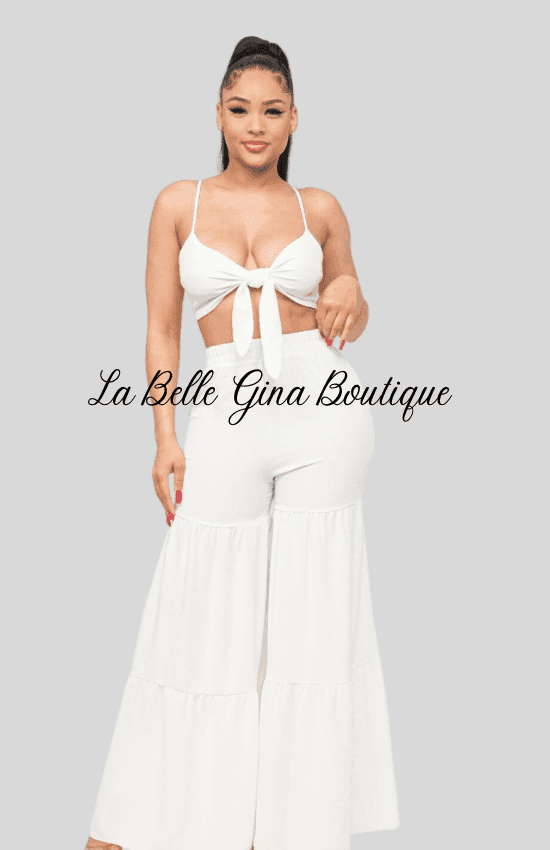 June Open Front Tie Top and Wide Flare Pants Set-White