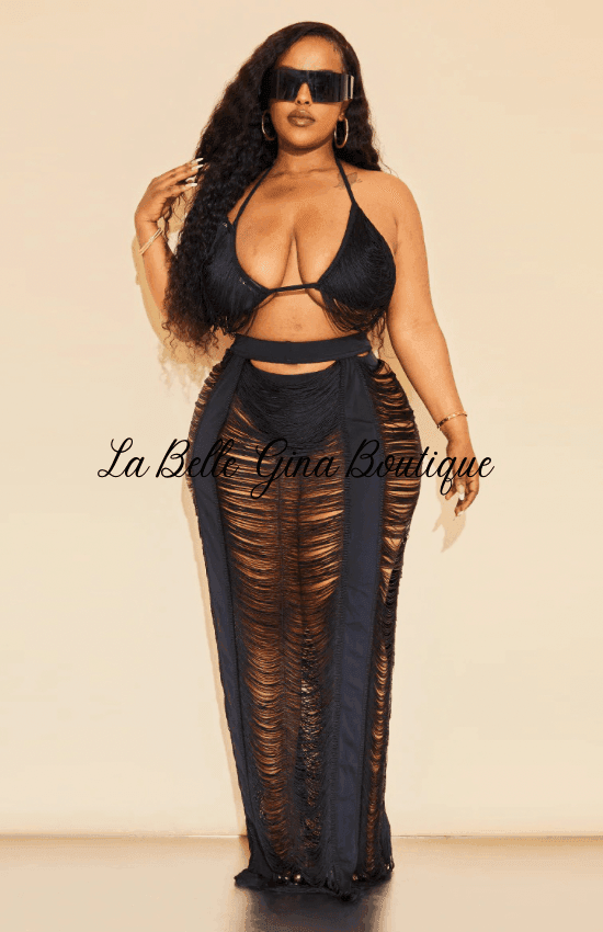 LABADEE Cutout Fringe Beachwear two-piece set-Black - La Belle Gina Boutique