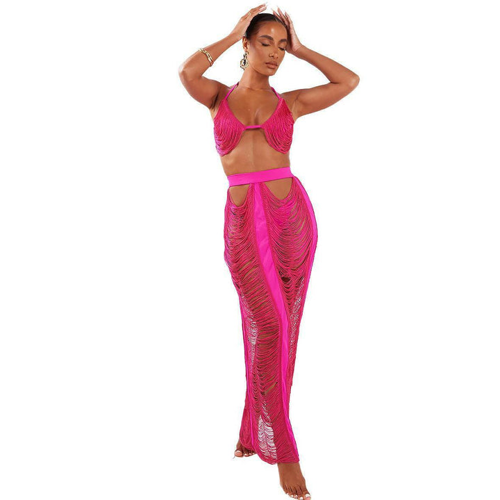 LABADEE Cutout Fringe Beachwear two-piece set-Black