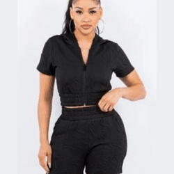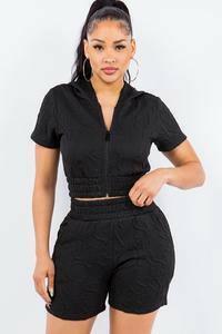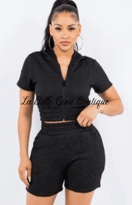 Sofia hem finishing on hoodie and short set- Black - La Belle Gina Boutique