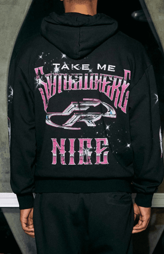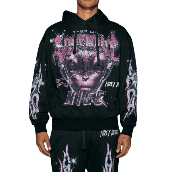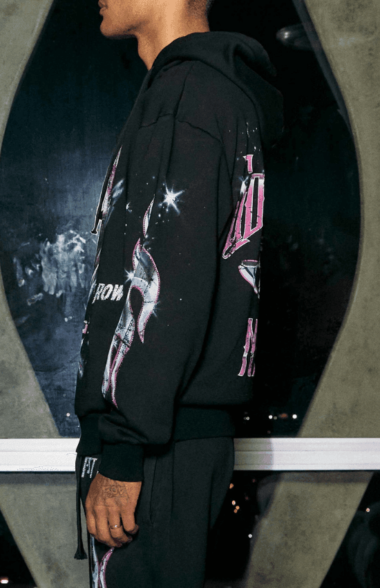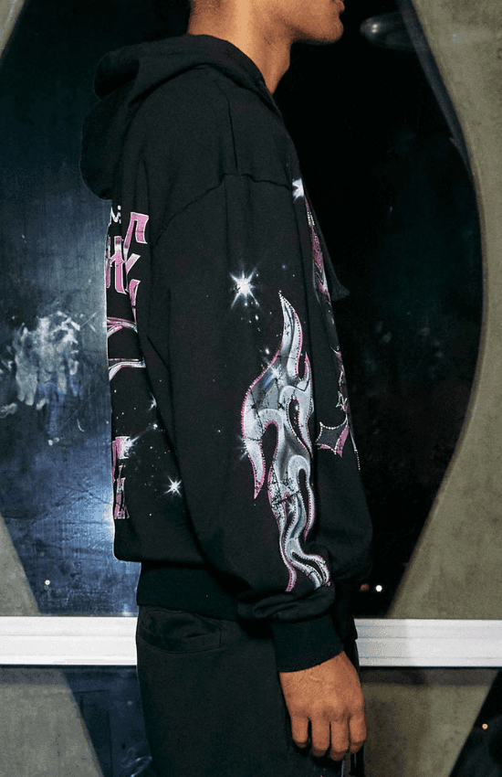Louis Premium Graphic Print First Row Oversize Sweat Hoodie With Rhinestone - La Belle Gina Boutique