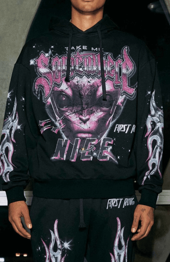 Louis Premium Graphic Print First Row Oversize Sweat Hoodie With Rhinestone