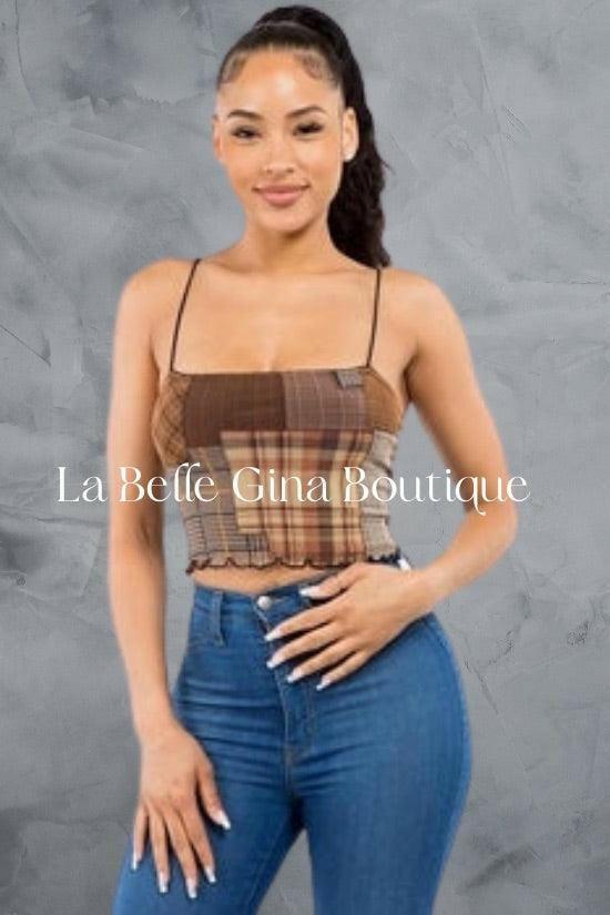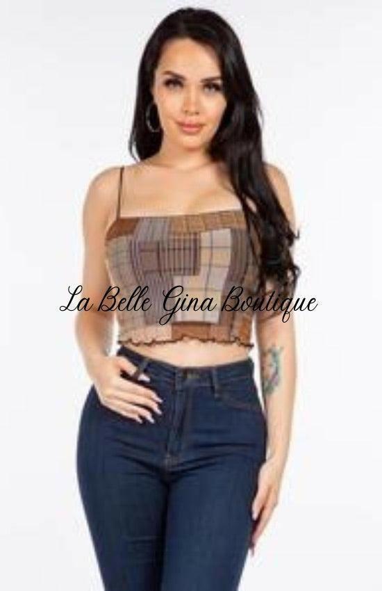 DANE Sleeveless printed mesh crop top - La Belle Gina Boutique