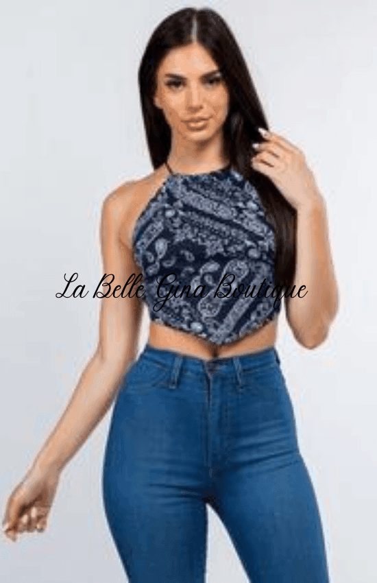 MY sleeveless halter neck boho bandana crop top - La Belle Gina Boutique