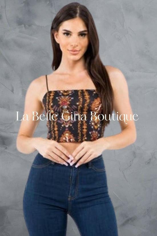 Ena sleeveless baroque Venus print crop top - La Belle Gina Boutique