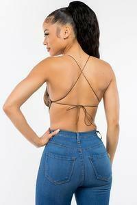 Sleeveless baroque printed crop top with crisscross open back.