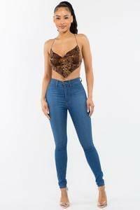 Kate sleeveless baroque printed crop top with crisscross open back.