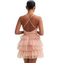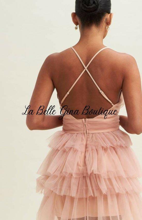 Alice Mesh Tiered Tutu Dress - Elegant Party Birthday Holiday Date Dinner and Flirtatious Fashion Mini Dress-Blush