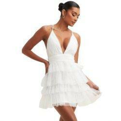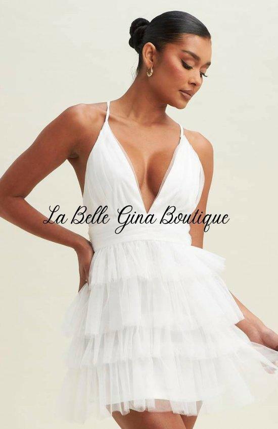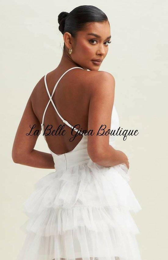 Alice Mesh Tiered Tutu Dress - Elegant Party Birthday Holiday Date Dinner and Flirtatious Fashion Mini Dress-White