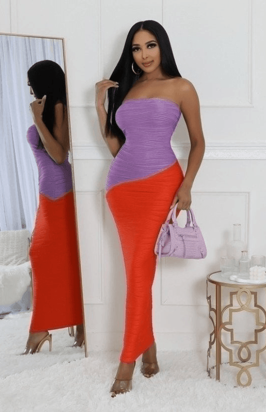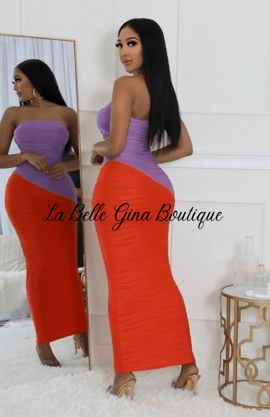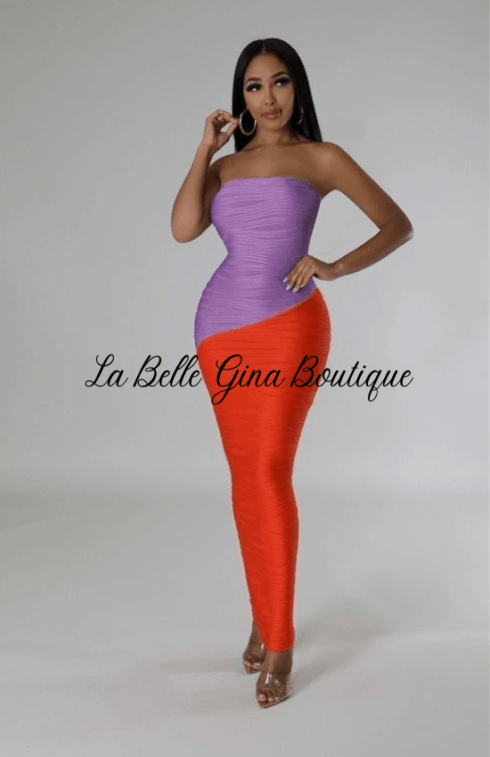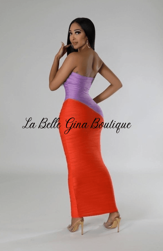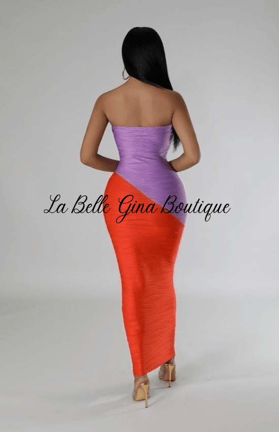 Gina tube Band No Closure Special Occasion Vacation Holiday Party Event Night out Stretch Long Dress-Lilac/Orange