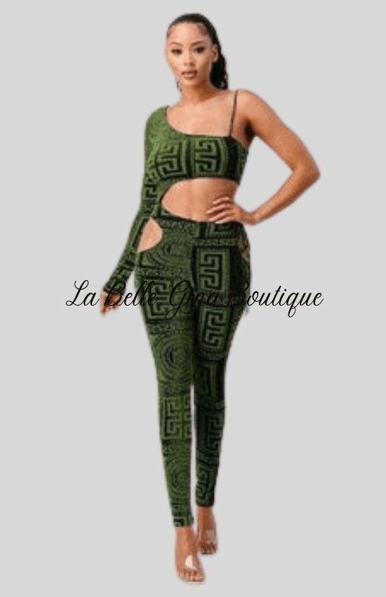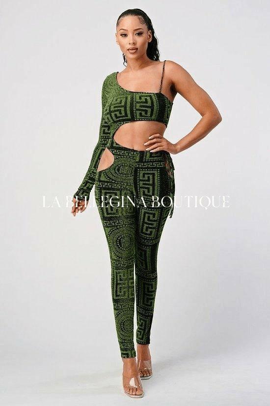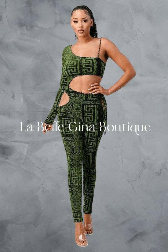 Angel metallic knit one shoulder cut out Jumpsuit.FINAL SALE