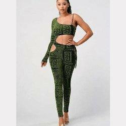 - Discover the unique appeal of the Angel metallic knit one shoulder jumpsuit with its stylish single-shoulder strap. Sharp hip and midriff cutouts infuse a daring, modern edge. Enjoy a seamless fusion of traditional tailoring and updated design for a vibrant, attention-grabbing appearance.
