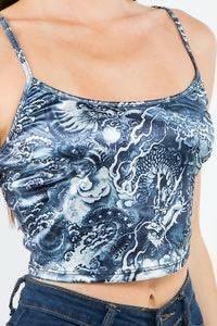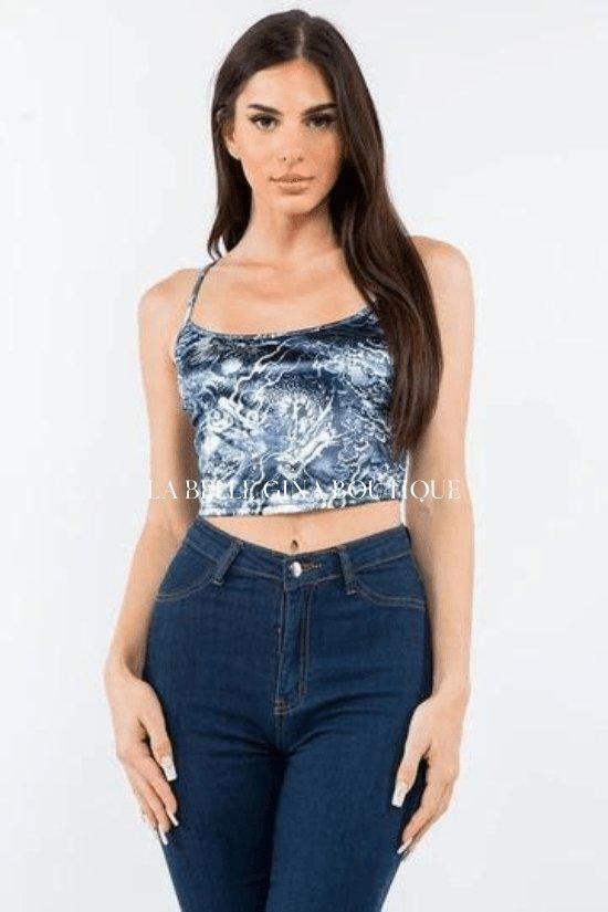 Want to elevate your fashion game? Look no further than the Ave sleeveless round neck dragon printed satin crop top. This trendy top is a must-have for any fashion-forward individual. Featuring a round neck and sleeveless design, this crop top is perfect for showing off your toned arms. The dragon print adds a unique and edgy touch to the top, making it a statement piece in any outfit. Made from satin material, this crop top is not only stylish but also comfortable to wear. The smooth and soft fabric will feel luxurious against your skin, making you feel confident and chic.