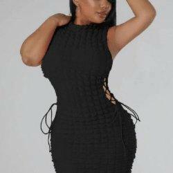 With its one-shoulder design and knee-length cut, this bodycon dress exudes a sexy and sophisticated vibe. The lace-up detailing on the side adds a touch of allure, while the waistline accentuates your curves, creating a flattering silhouette that will turn heads wherever you go.