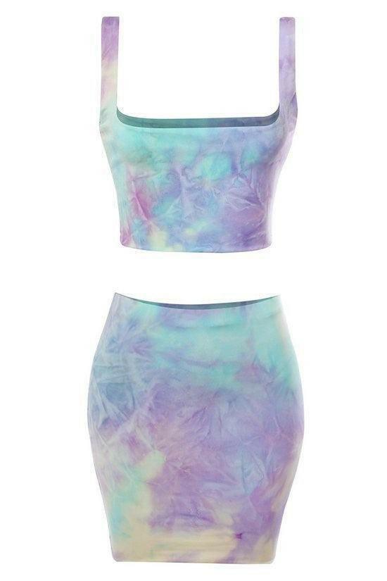Elevate your wardrobe with the tie dye square neck crop and mini skirt set. The striking square neckline pairs beautifully with the bold dye pattern, making this ensemble a unique centerpiece. Wear it whenever you want to make a statement and show off self-assured energy. Let the tie dye square neck crop redefine your signature style. Add this vibrant set to your closet for lively color, great fit, and versatility every time you wear it.