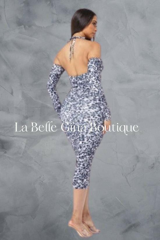BENITA midi animal print top open shoulder with attached long sleeve dress. - La Belle Gina Boutique