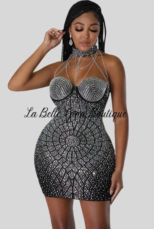 Mirtha tight chest tassel hot drill Mini dress-black - La Belle Gina Boutique