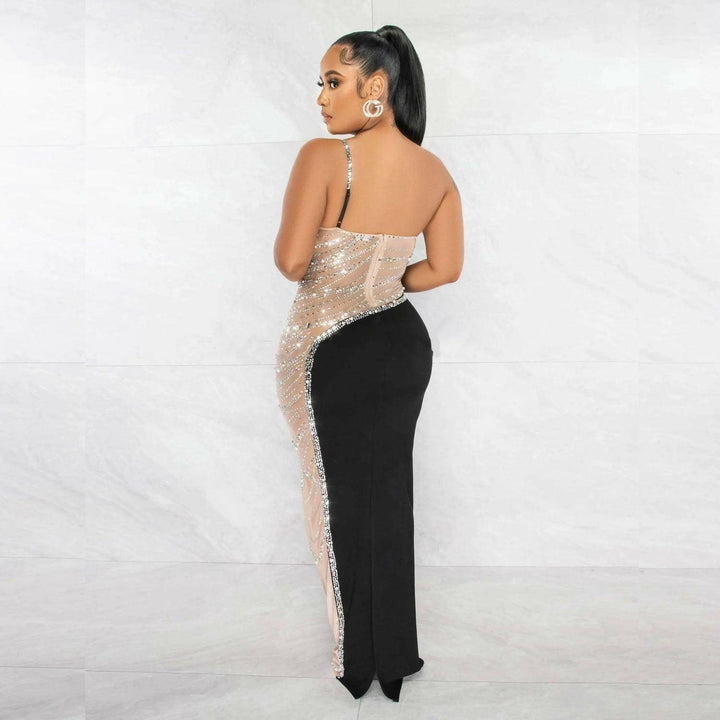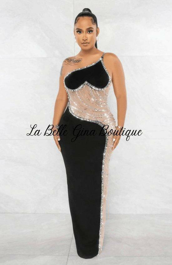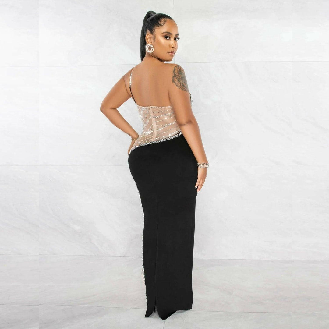 Mirtha Beaded Sleeveless Strap Long Dress-Black - La Belle Gina Boutique