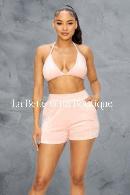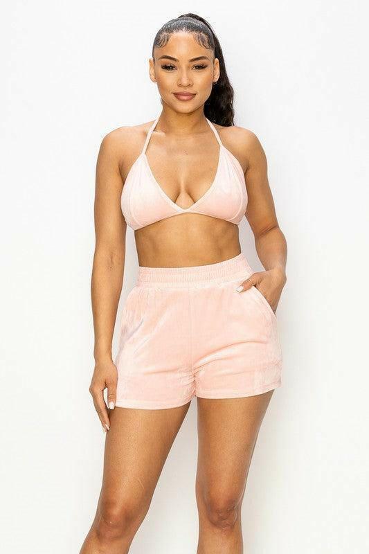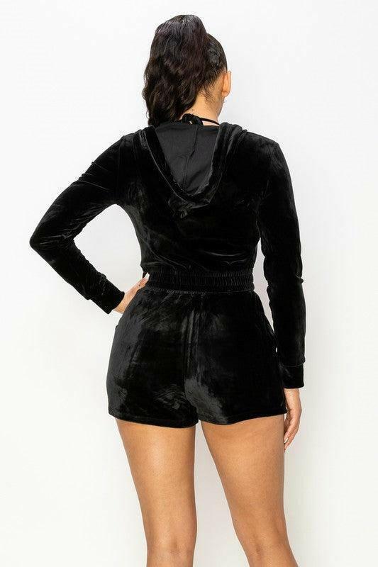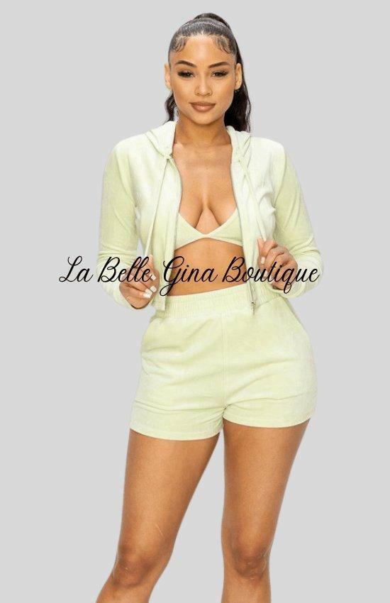 CLARA three piece bralette knit top with long sleeves,hoodie and a pair of shorts . - La Belle Gina Boutique