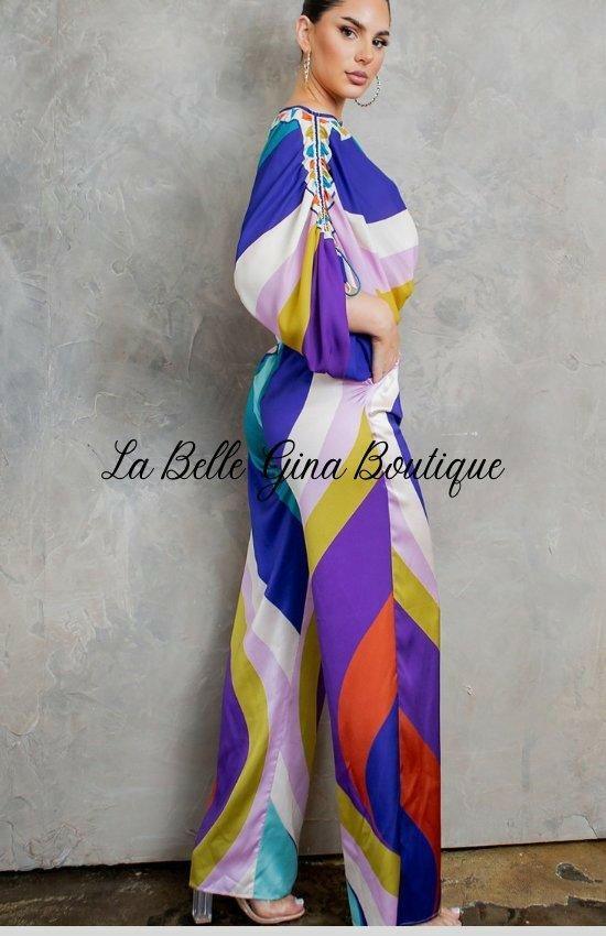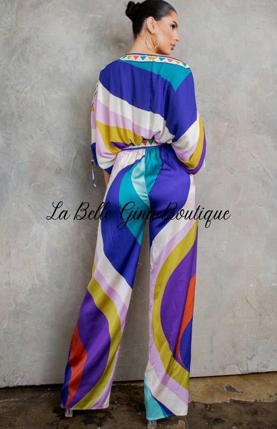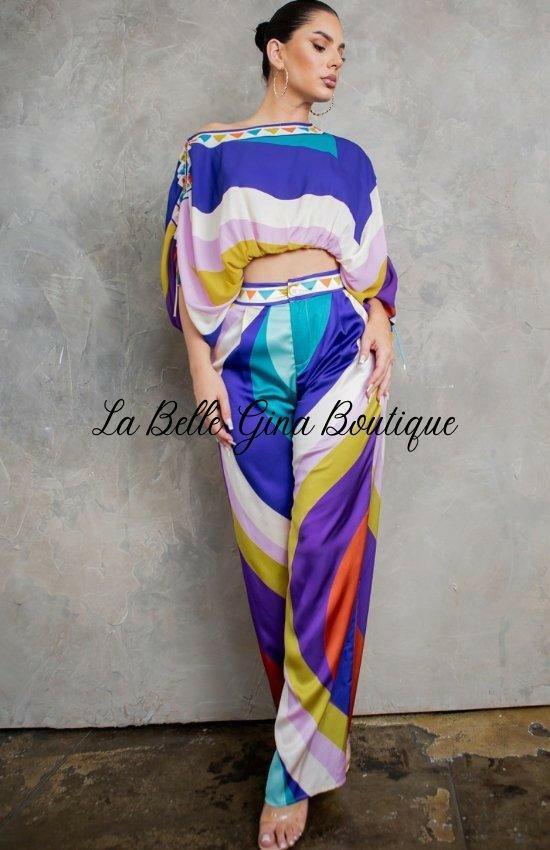 Clarette Cropped Blouse And Wide Pants Set-Purple Combo