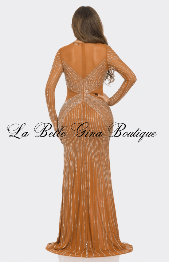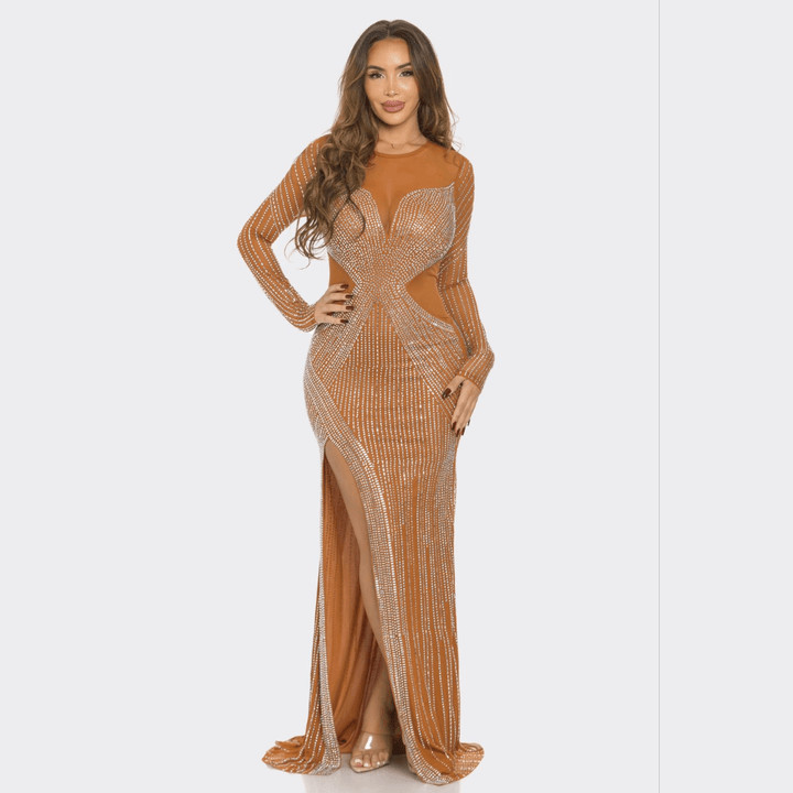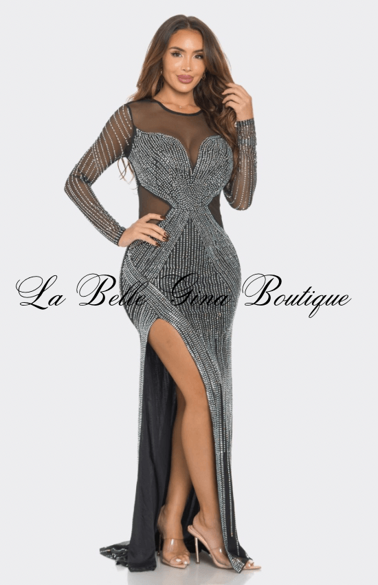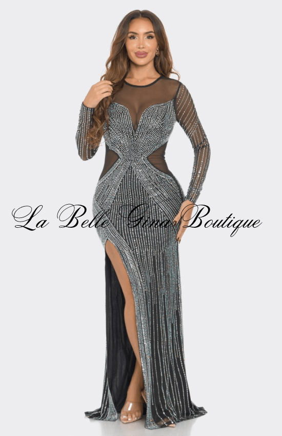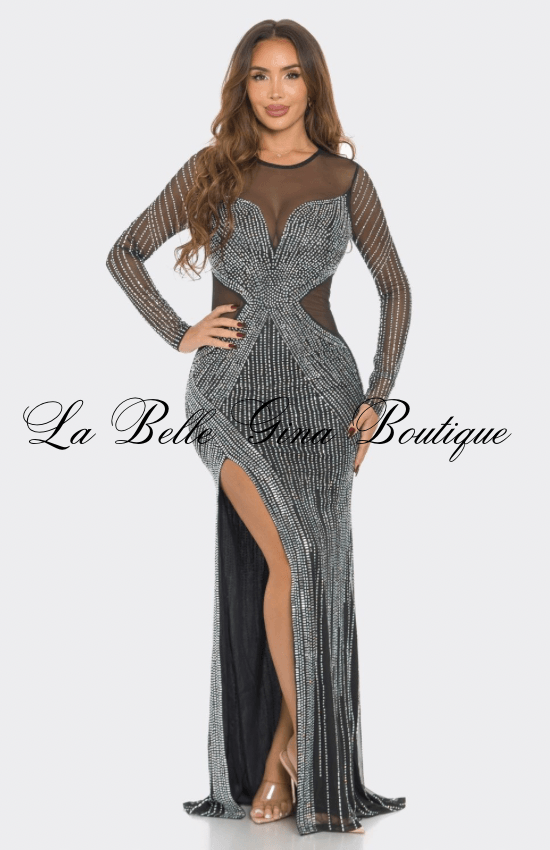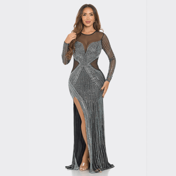 Claudia Rhinestone Mesh Long Sleeve Maxi Dress