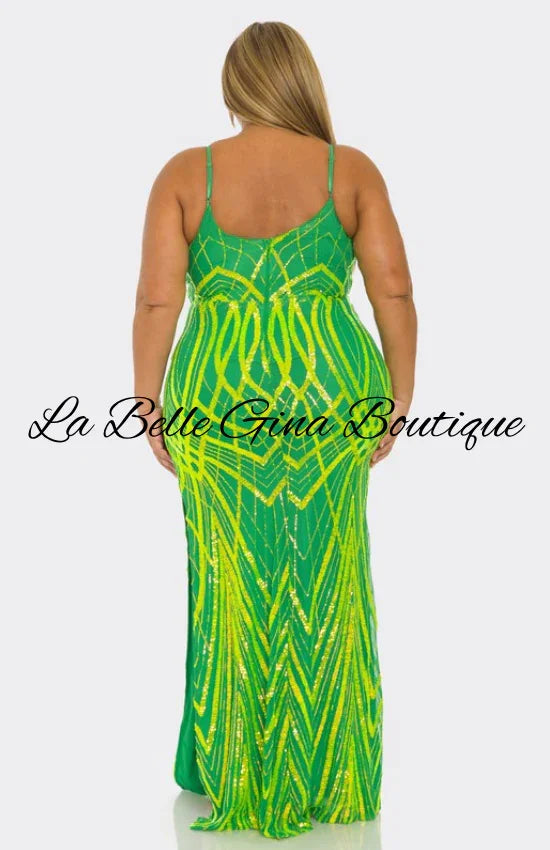 Curve-Hugging Green Sequin Plus Size Gown – Glamorous Slit Maxi Dress