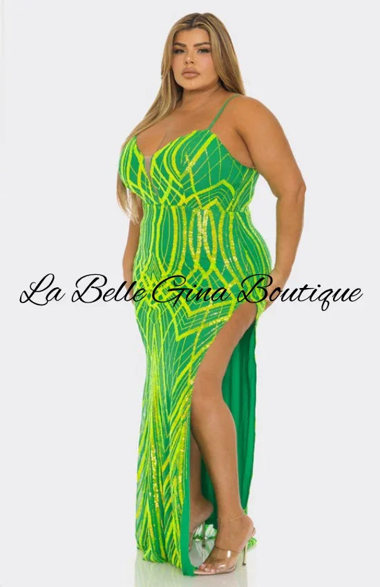 https://www.labelleginaboutique.com/collections/new-arrivals-fashionDiscover the allure of a truly breathtaking plus size evening gown crafted for women seeking to radiate confidence and style. This green sequin maxi dress is an emblem of sophistication and glamour, always ensuring you stand out in any setting. Expertly tailored to accentuate and embrace your curves, the gown’s silhouette flatters every figure while keeping you comfortable throughout the event. Vibrant neon green and yellow sequins shimmer magnificently, catching light from every direction and leaving a striking impression. The deep V neckline elevates your décolletage, and the adjustable straps grant a perfect fit, allowing you to dance with ease and grace. Embrace the dramatic high slit, adding both movement and allure to this bold ensemble. Whether for a wedding, prom, gala, or another celebration, this gorgeous dress guarantees you command attention and embody self-assurance.