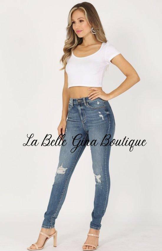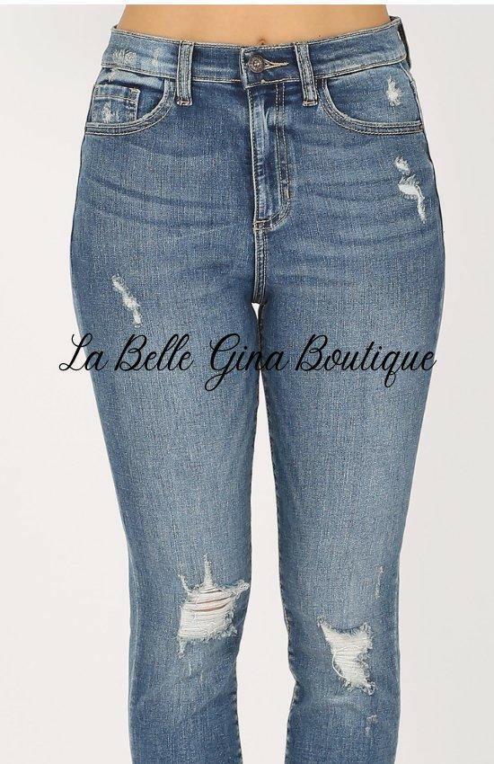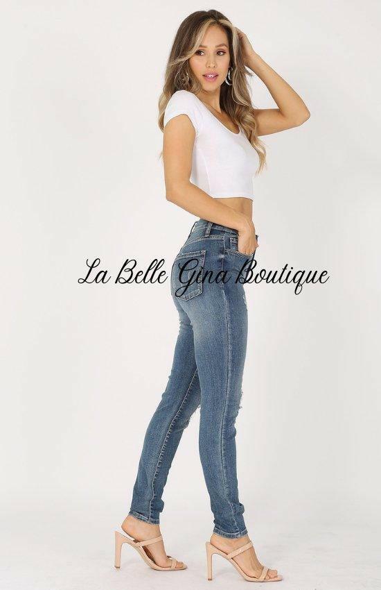 Danny Distressed high rise 5 pocket skinny denim jeans - La Belle Gina Boutique
