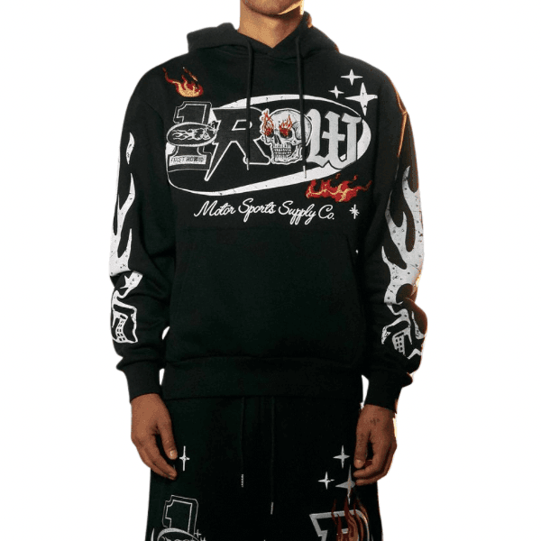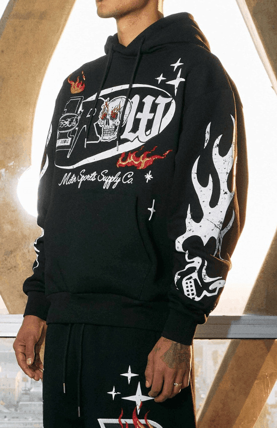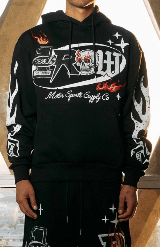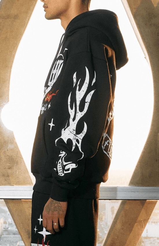 Danny Print Sweat Hoodie First Row Oversized With Patches And Rhinestone - La Belle Gina Boutique